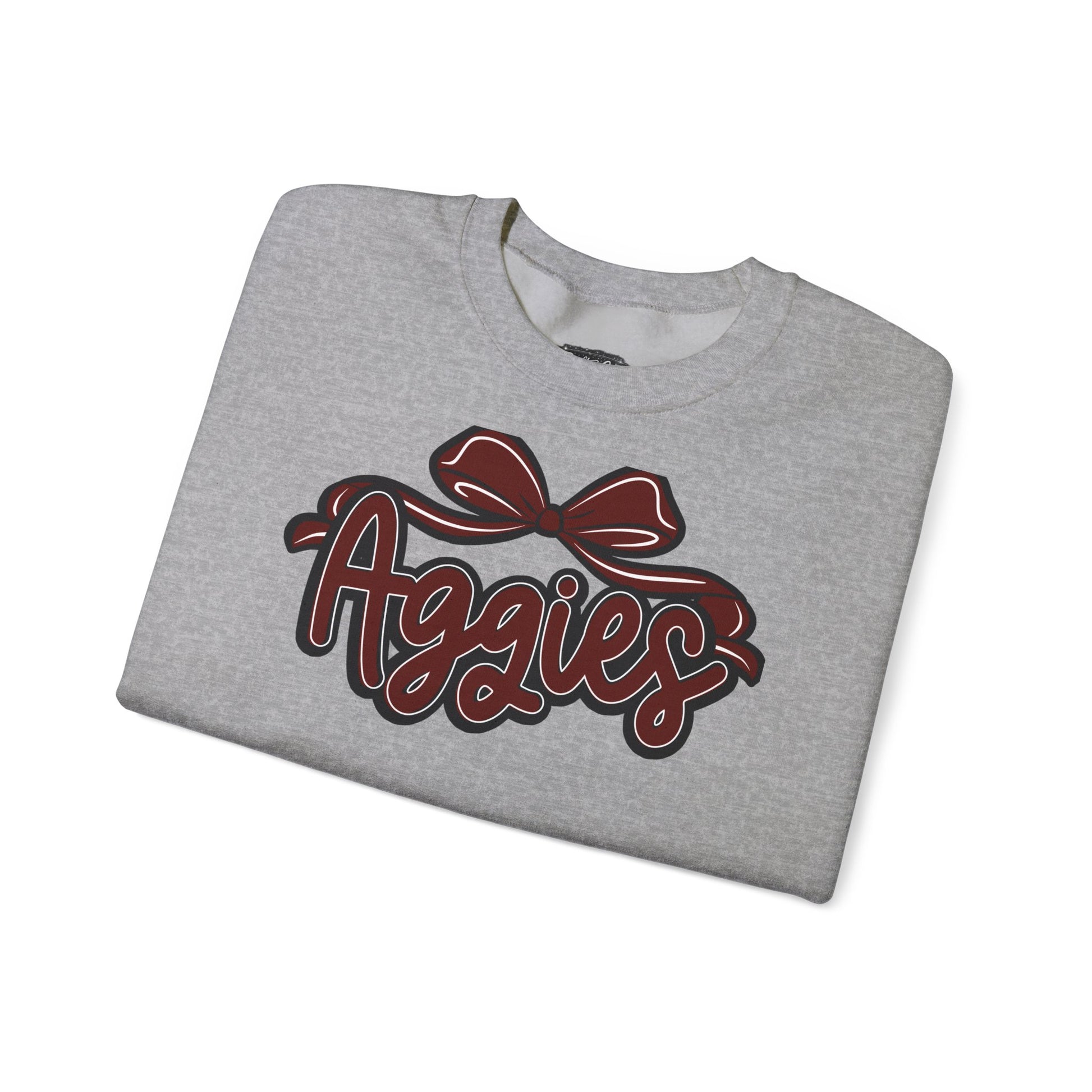 This cozy crewneck brings a warm, hometown pride to quiet mornings and chilly game nights. Soft heather fabric and a classic fit wrap you in familiar comfort while the bold, hand-lettered “Aggies” design—accented by a ribbon-style bow—adds playful school spirit without shouting. Lightweight enough for layered fall walks, yet sturdy for weekend tailgates, the sweatshirt wears like an old favorite from the first time you pull it on. It sits naturally in the wardrobe of someone who loves local teams, campus memories, and low-key, stylish support. Product features - Embroidered options: choose left chest, center chest, large center chest, or both wrists - Medium-heavy 50/50 cotton-poly blend (8.0 oz/yd²) for durability and warmth - Tubular knit (no side seams) with ribbed collar and double-needle stitching for shape retention - DTF inner neck labels and wrist prints; DTG used for main prints; OEKO-TEX certified dyes - Made in Nicaragua; meets safety and environmental compliance; US cotton sourcing and ethical standards Care instructions - Machine wash: cold (max 30C or 90F) - Non-chlorine: bleach as needed - Tumble dry: low heat - Do not dryclean -