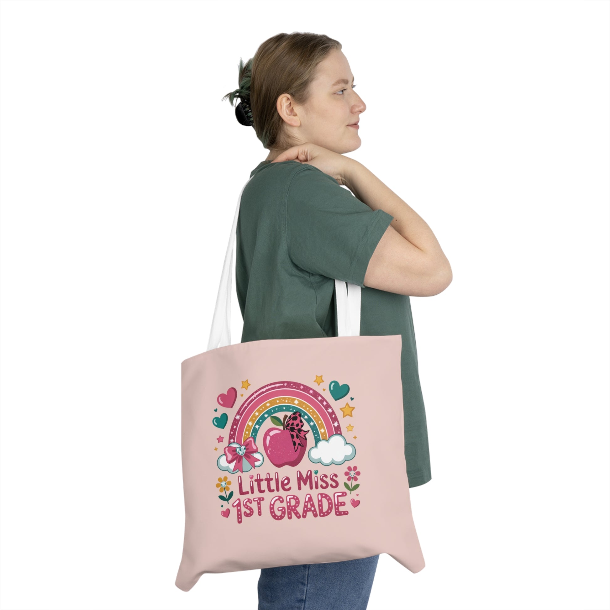 Little Miss 1st Grade Tote Bag | Teachers Rainbow Apple School Shoulder Bag